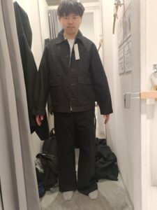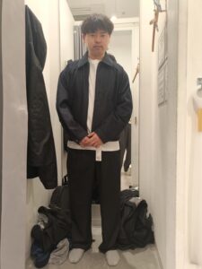 以下の写真はGUの試着室で、担当者が選んでくれた服を試しに着たあと、撮ってくれた写真です。(ユニクロは撮影禁止らしく、撮影はできませんでした)